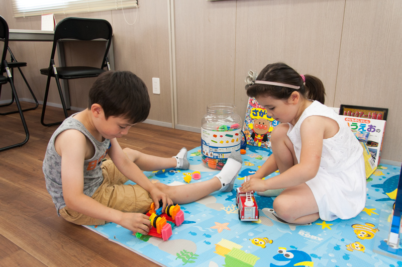 今日は雨の日・・・そんなときはうちの中で遊ぼう!ここはLDKにある広いキッズスペース。