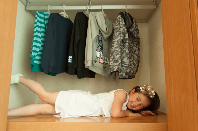 お勉強に飽きたら、かくれんぼスタート!って、一緒に隠れてどうすんねーん!