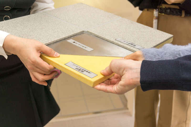 タイルの下には上質な保温材「硬質発泡ウレタン」が敷いてあるので、温かな上に車椅子で浴室に入っても床がきしまないのだそうです。