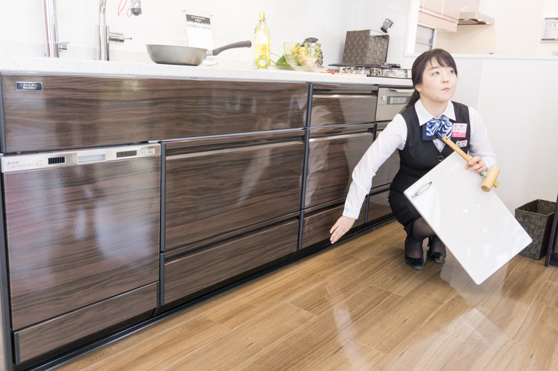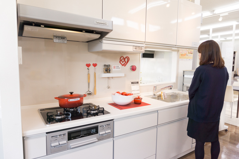 今日は一緒に住宅機器を見学させていただきます!最新のキッチンのデザインも気になるところです。」