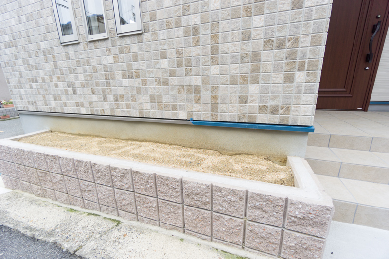玄関横にはガーデニングスペースが。広すぎないので手入れの手間も抑えられる「ちょうどええ」スペースになっています。