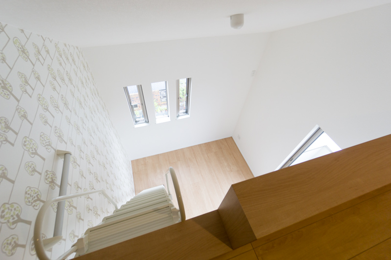 階段の壁も傾斜をつけてカットされています。