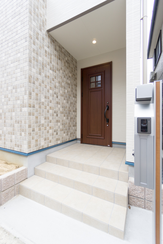 落ち着いたエントランスでは、アイアンの取手の玄関ドアが出迎えてくれます。