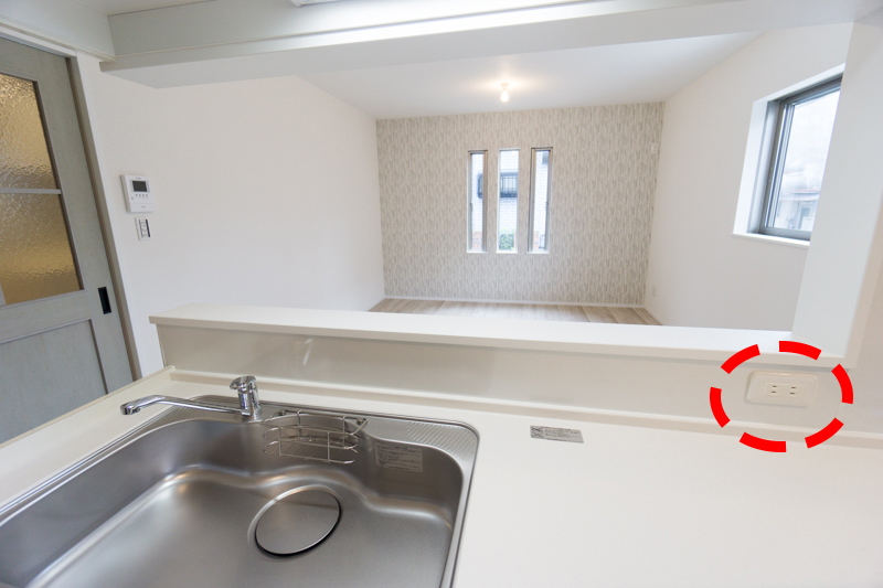 カウンターキッチンには「ちょうどええ」場所にコンセントがあります。