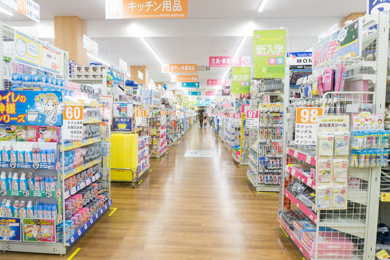 まずおさえておきたいのは、バラエティ雑貨の品揃えはピカイチ!サウスコート2階にある「ダイソー」