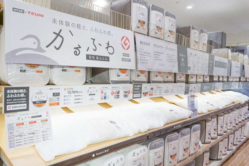 ニトリ×TEIJINのコラボレーション商品「かるふわ(→詳しくはコチラ)」で眠りの質をあげるのはいかがでしょうか? かるふわシングル¥13,797(税別)