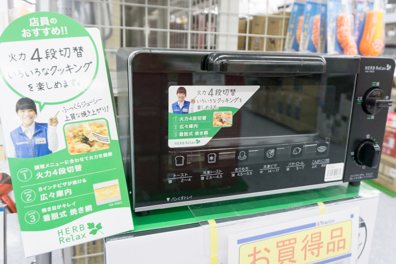 こちらも同じくヤマダ電機オリジナル家電「HERB Relax」の火力4段階オーブントースター YSKT90D3 ¥3,980(税別)