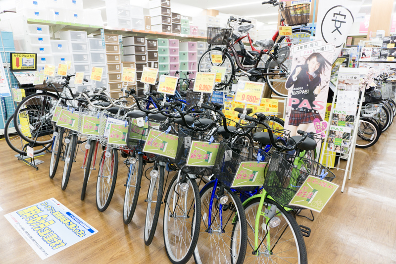 自転車コーナーにはこの通り自転車がずらり並びます。