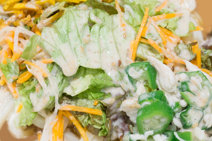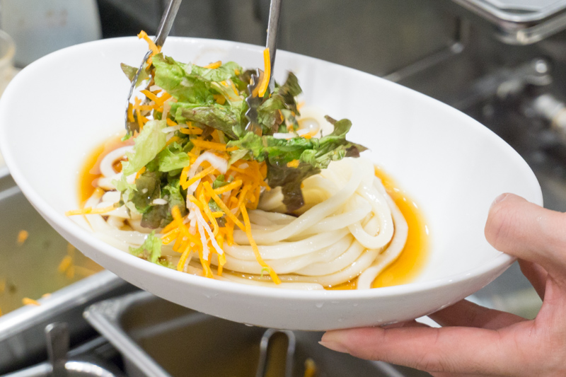 毎日の野菜不足を解消できてからだに嬉しい、暑い夏にぴったりの冷たいサラダうどんを一度ご賞味ください!