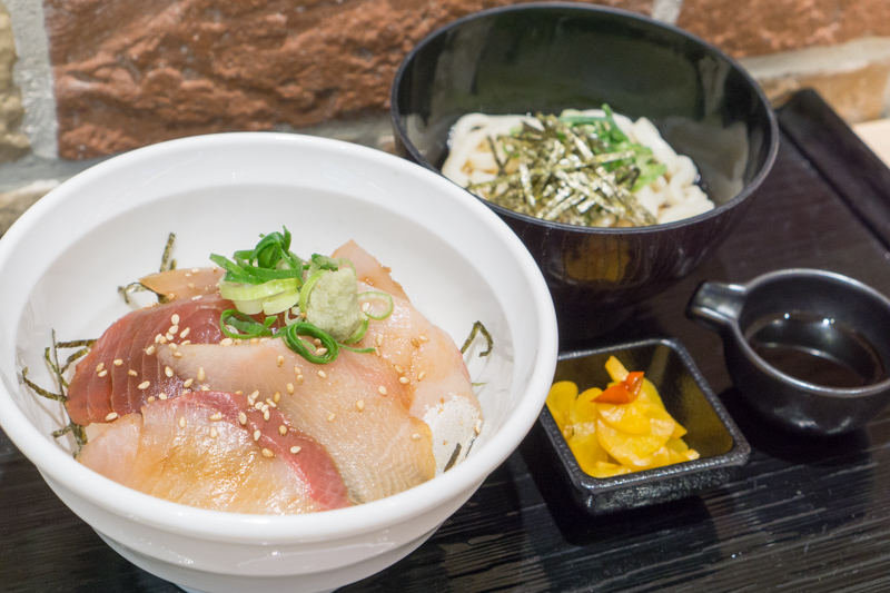 平日13時まで限定!鮮魚メインにまぐろとビン長が入った、後味サッパリのお得な丼です。