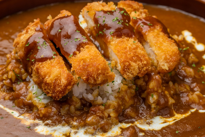 特製デミグラスソースの甘さ、スパイシーなカレー、チキンカツのジューシーさがとても合います。ぜひご賞味下さい。
