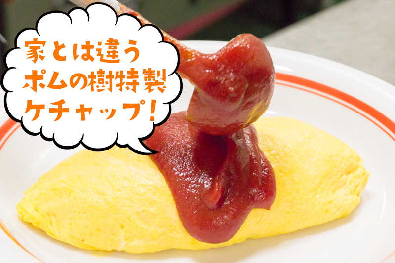 ふわふわのたまごのオムライスにポムの樹特製のケチャップをかければ完成!