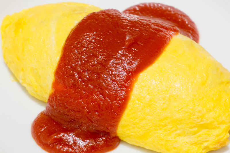たまごを最高の状態に仕上げ、ポムの樹特製のケチャップをかけた「定番の一品」です。