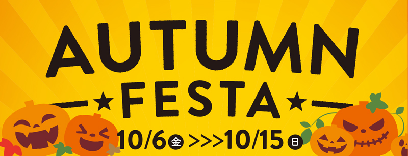 お手頃で気軽に楽しめるハロウィングッズをはじめ、オータムフェアでは各店舗おトクな商品を取り揃えているとのこと!