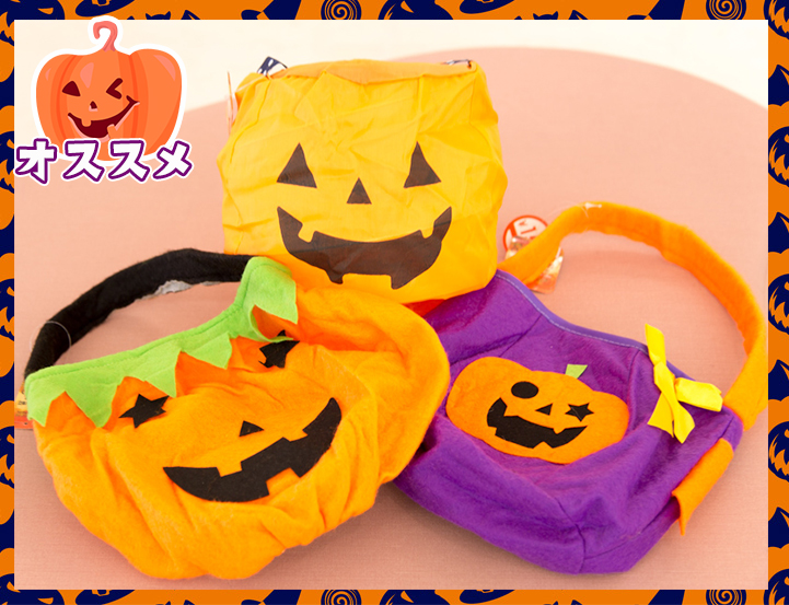 ハロウィンのおやつをもらうのにもピッタリのバッグは、表情もいろいろ選べます