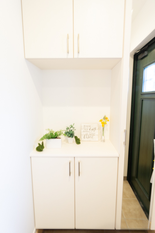 白と薄いブラウンを基調にしたエントランス。
