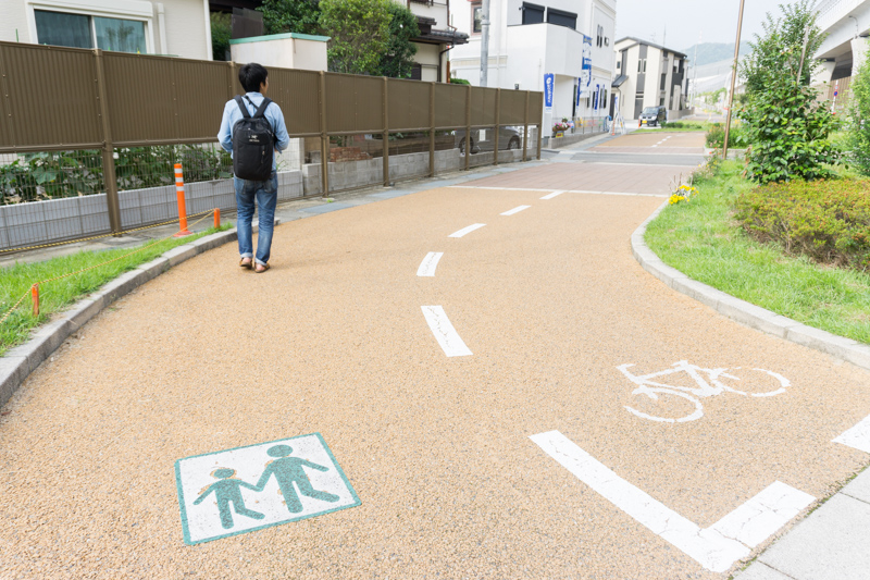 ちなみに、道路は歩行者専用と自転車専用に分かれているので安全です。まっすぐな道だとつい、自転車は速度を出してしまいますからね〜。