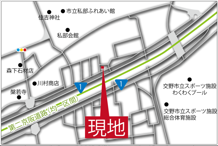 | 交通 | 京阪交野線「交野市」駅徒歩14分 JR学研都市線「河内磐船」駅徒歩17分 |