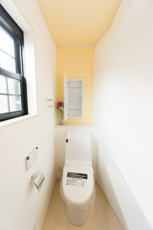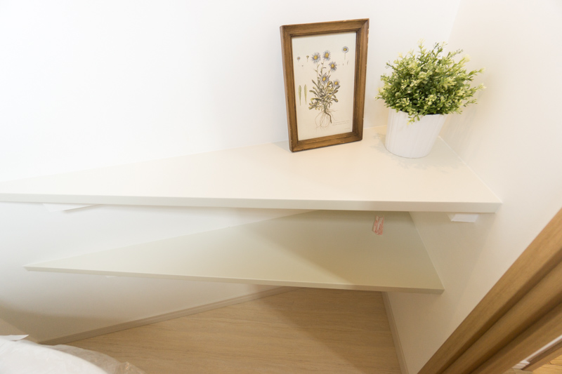 記事の冒頭でご紹介した三角形の棚はこのトイレにあります。