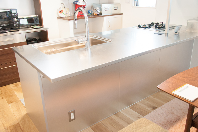 タカラスタンダートのショールームを色々回ったんですが、最初は『難しい』との解答だったんやけど、梅田にあるショールームに行ったら、『なんとかできそう』って言ってもらって、天板だけステンレスにしてもらったんです」