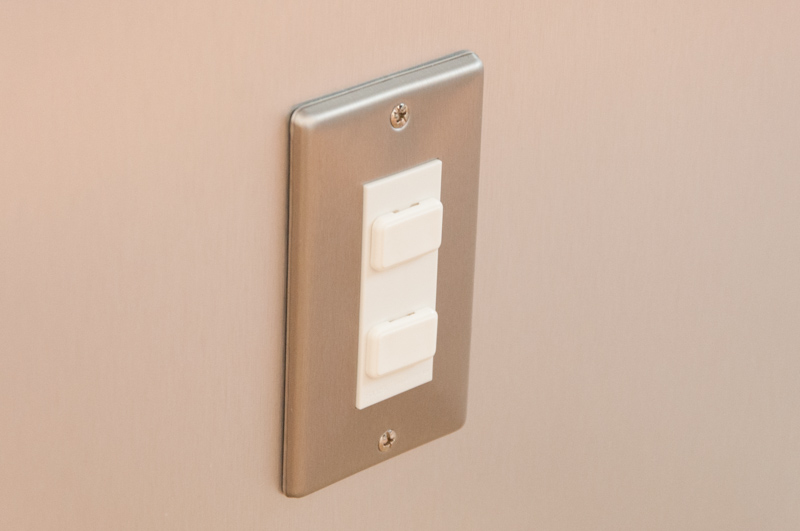 そして、そのステンレスの風合いに合わせて、コンセントも通常の白いプラスチックの枠をご主人がステンレス風にアレンジ。