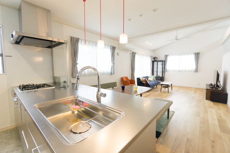 キッチンから見渡す広いリビング・ダイニングは窓からの採光もばっちり!