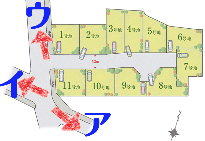 すべてのお家の敷地は30坪以上、分譲地内の道路幅は5.2mあります。