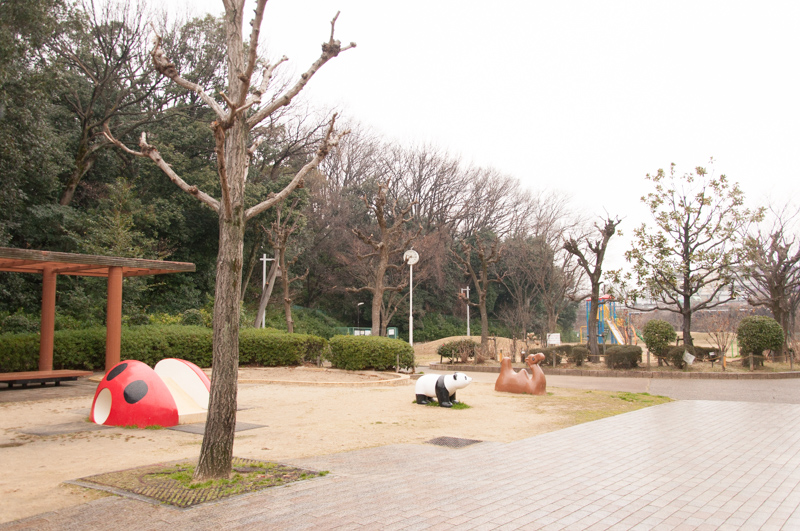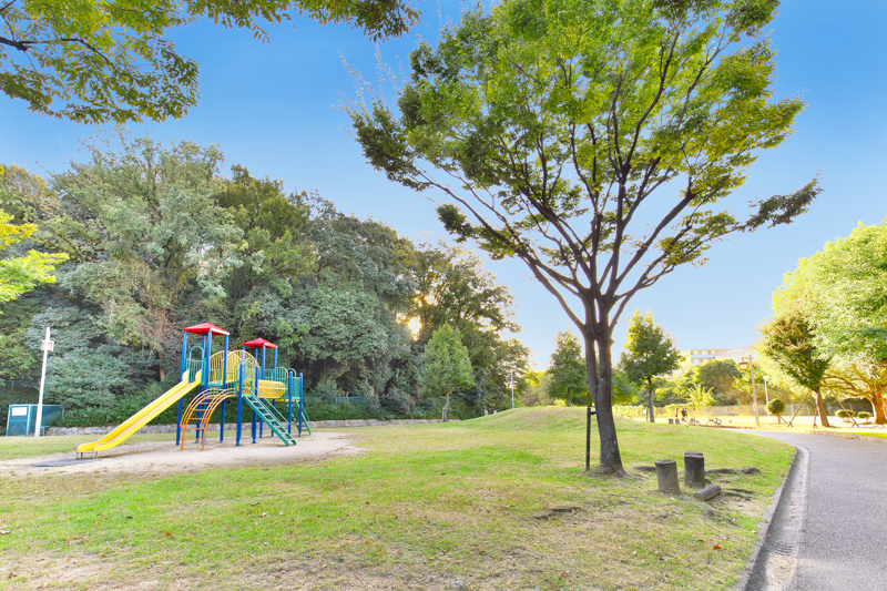 坂を下ると、ありました!!星ヶ丘公園!!(分譲地まで徒歩7分)