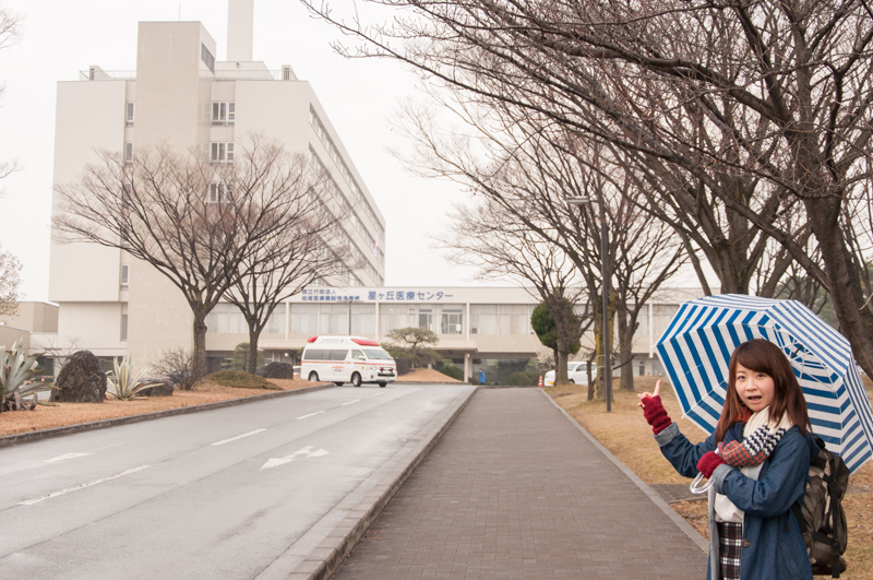 坂を下って1号線手前を右手に曲がると、先ほど分譲地の奥に見えていた「星ヶ丘医療センター」があります。(分譲地から徒歩6分)大きな病院がすぐ近くにあると子育てする上でとても安心ですね!