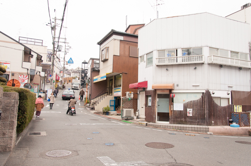 − ちなみに、ここはかつて妖怪達が坂道ダッシュをしたことがある坂です。坂沿いに居酒屋・定食屋・カフェ・弁当屋・整骨院・本屋などがずらっと並んでいます。
