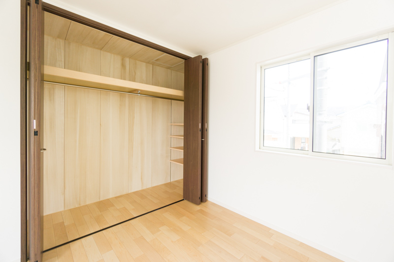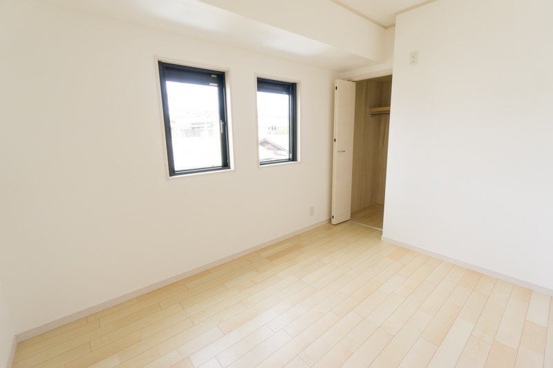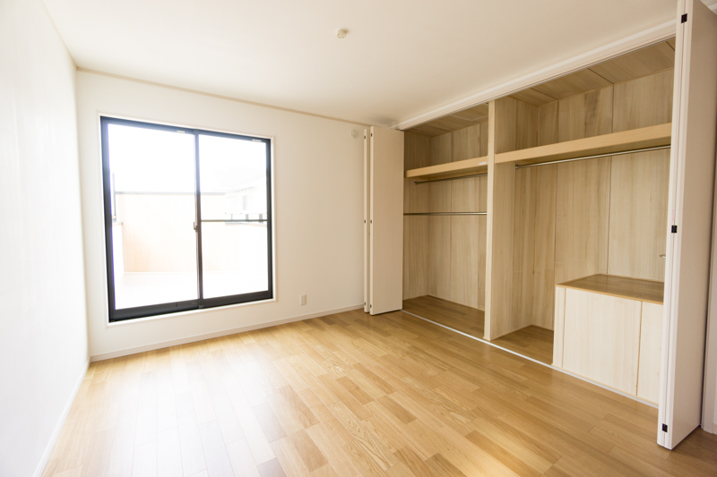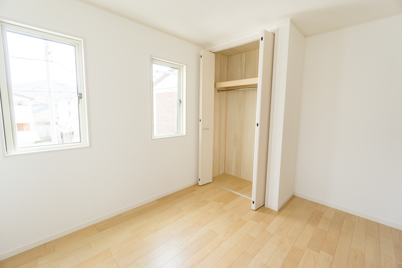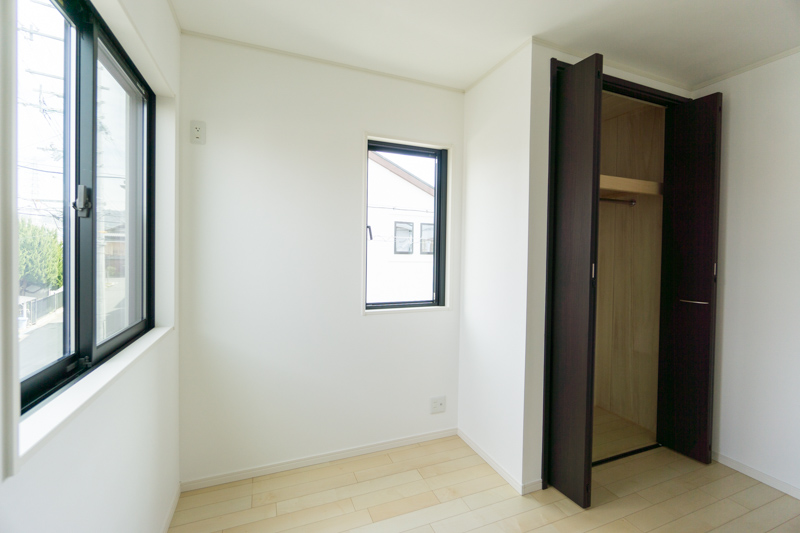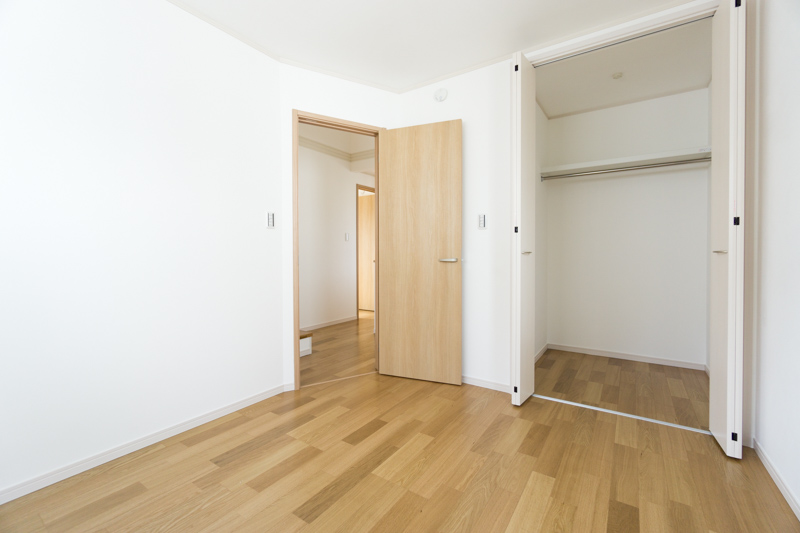 2階は3部屋あります!シンプルな白壁で、全部屋収納スペース付き!