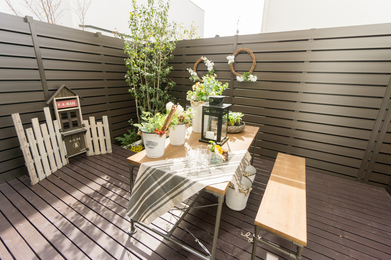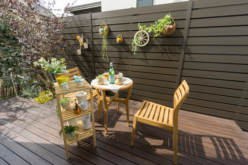 家族同士のプライバシーを守る目隠しフェンスを採用。