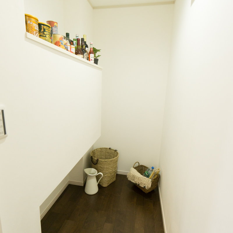 保存食や普段あまり使わないものをまとめて全部入れてしまえます!ついつい物が多くなってしまう子育て世代に嬉しいスペースです