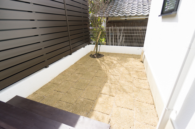右には中庭!洗濯を干してもいいし、こどもの遊び場にしてもいいし、プチ家庭菜園やガーデニングをしてもいいし、パパママの趣味の場にしてもいいし、ワンちゃんを飼ってもいいし・・・