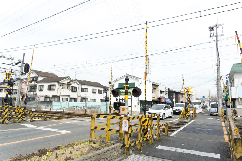 まずは踏切を渡って、道なりにずっとまっすぐ。