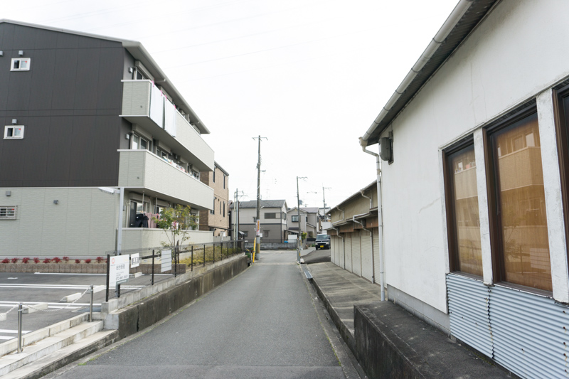 すると真っ白の新しい分譲地がすぐに見えますので、直進すれば到着です!