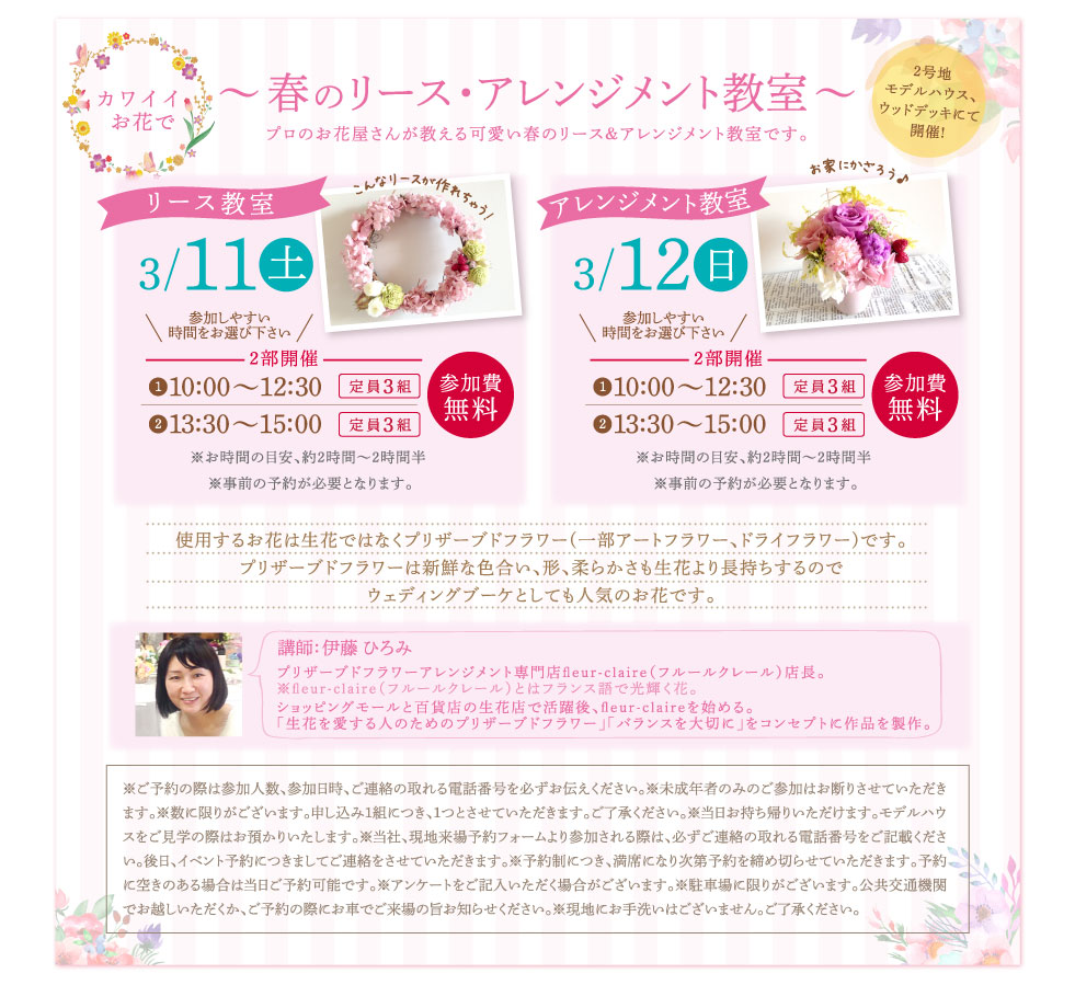プロのお花屋さんが教えるかわいい春のリース&アレンジメント教室です。