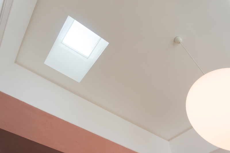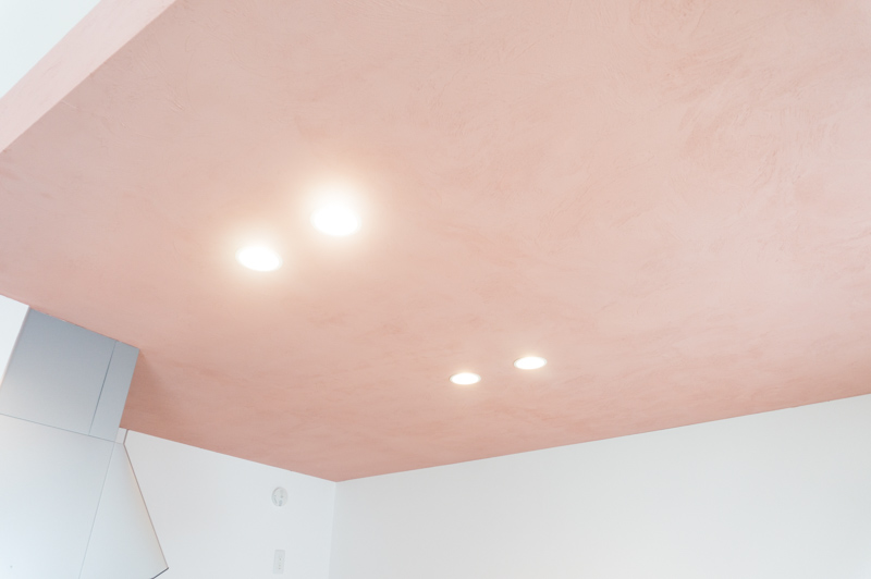 その天井やポイントで使われているピンクの部分もベネチア漆喰が使われています。