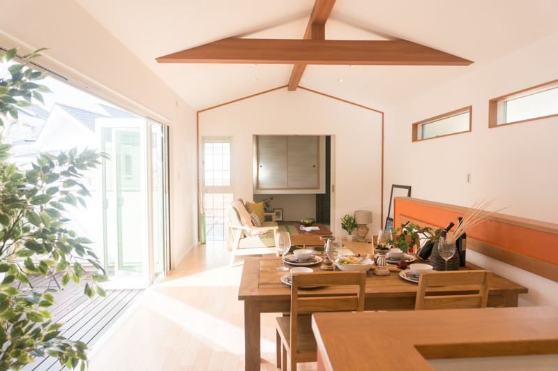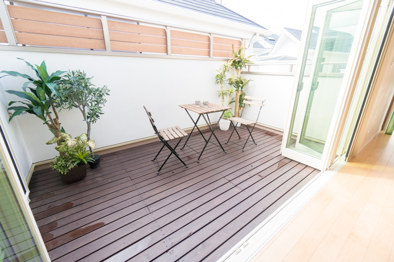 家事の合間のひと休みや家族だんらんにも使えるウッドデッキがあるおうち。