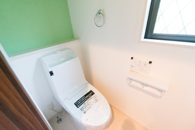 トイレ内はグリーンの壁がアクセントになっています