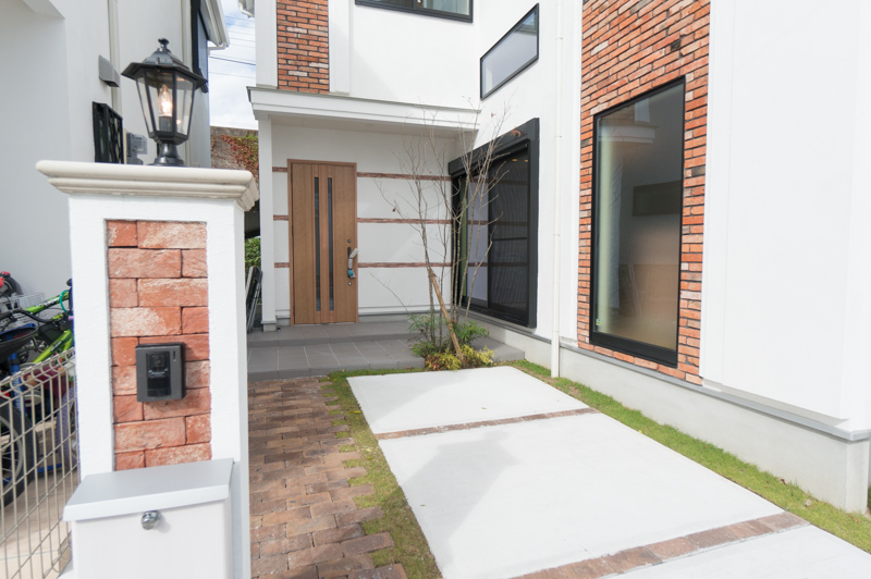 エントランスや道路の境目には煉瓦(れんが)塀があり、おしゃれなのはもちろんしっかりプライバシーを守ってくれます。