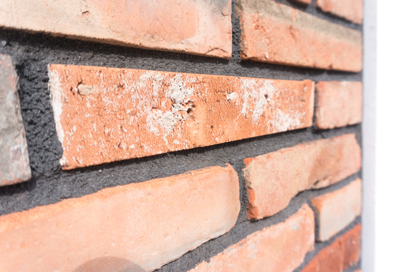 白い壁にアンティークなレンガが映えています。