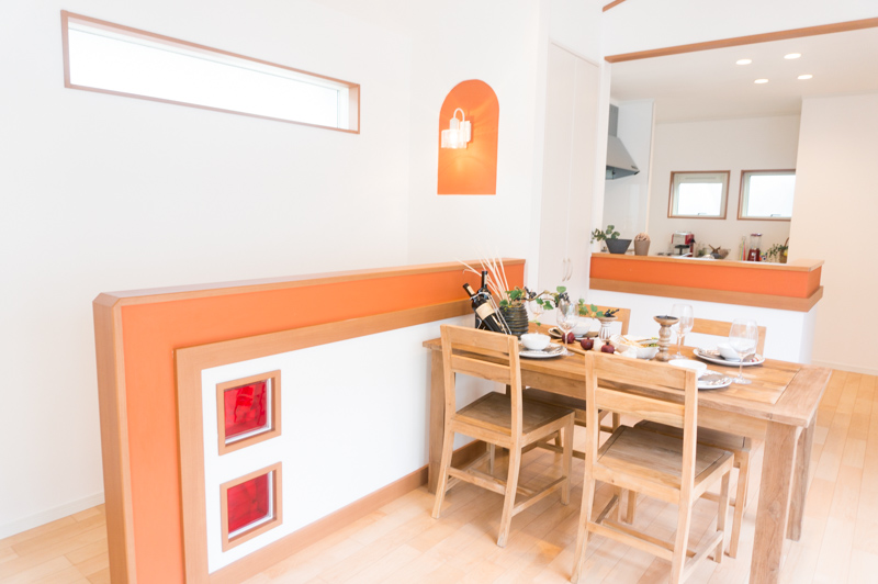 ダイニング側に目をやると…オレンジのアクセントが素敵