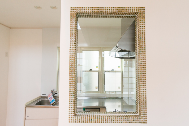 手前の明り窓まわりのタイルもお部屋のアクセントになってかわいい