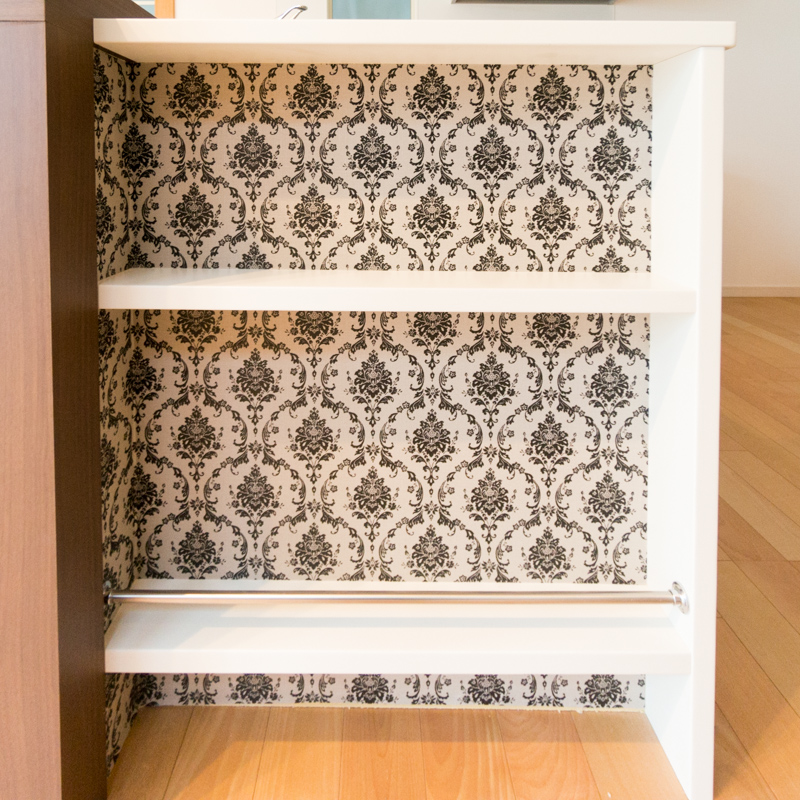 オシャレな柄入りの作り付け棚が