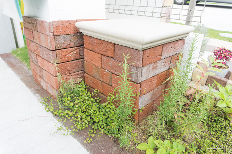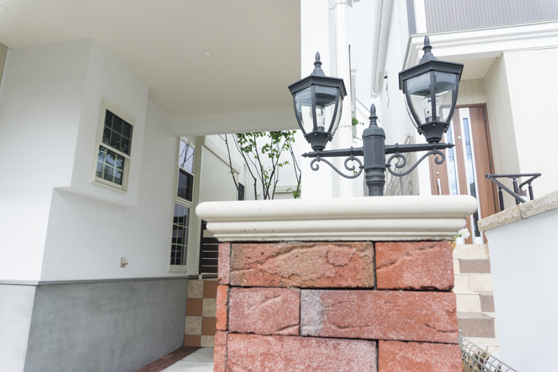 アンティーク調のレンガにナチュラルな植物。レトロな照明もオシャレ