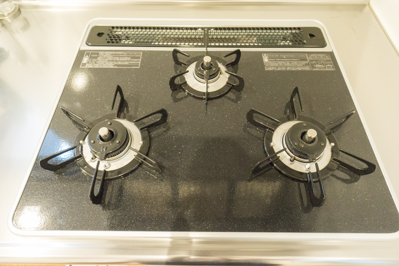 三口コンロも掃除しやすい取り外しが出来るものです。