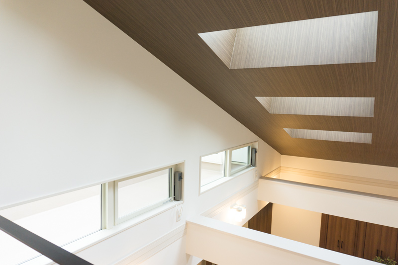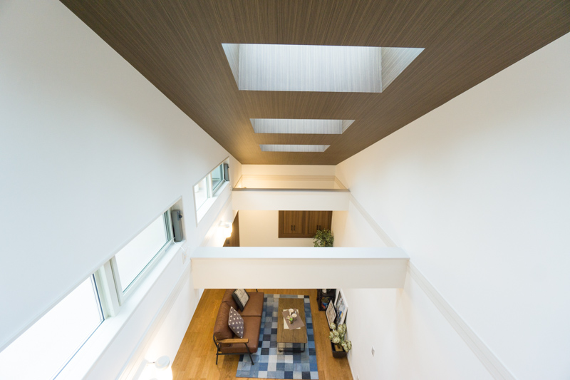勾配天井に木目を貼ることで、さらに高く!広く!見えるようになっています