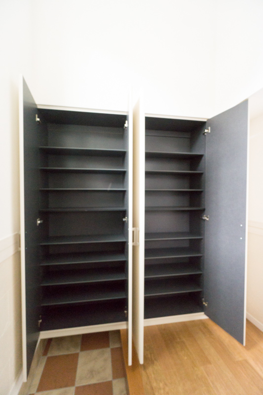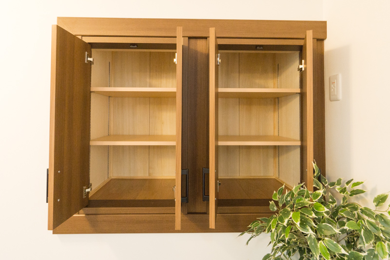 作り付けの棚は、家族それぞれのモノをわけて入れたりできて、何かと役立ちそう