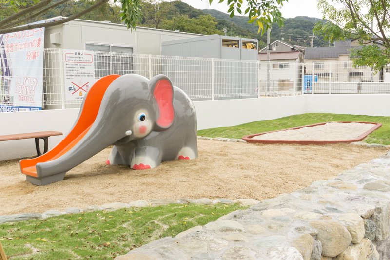 かわいいゾウさんと大きくて清潔な砂場。石垣は天然石を使っているのもこだわり!